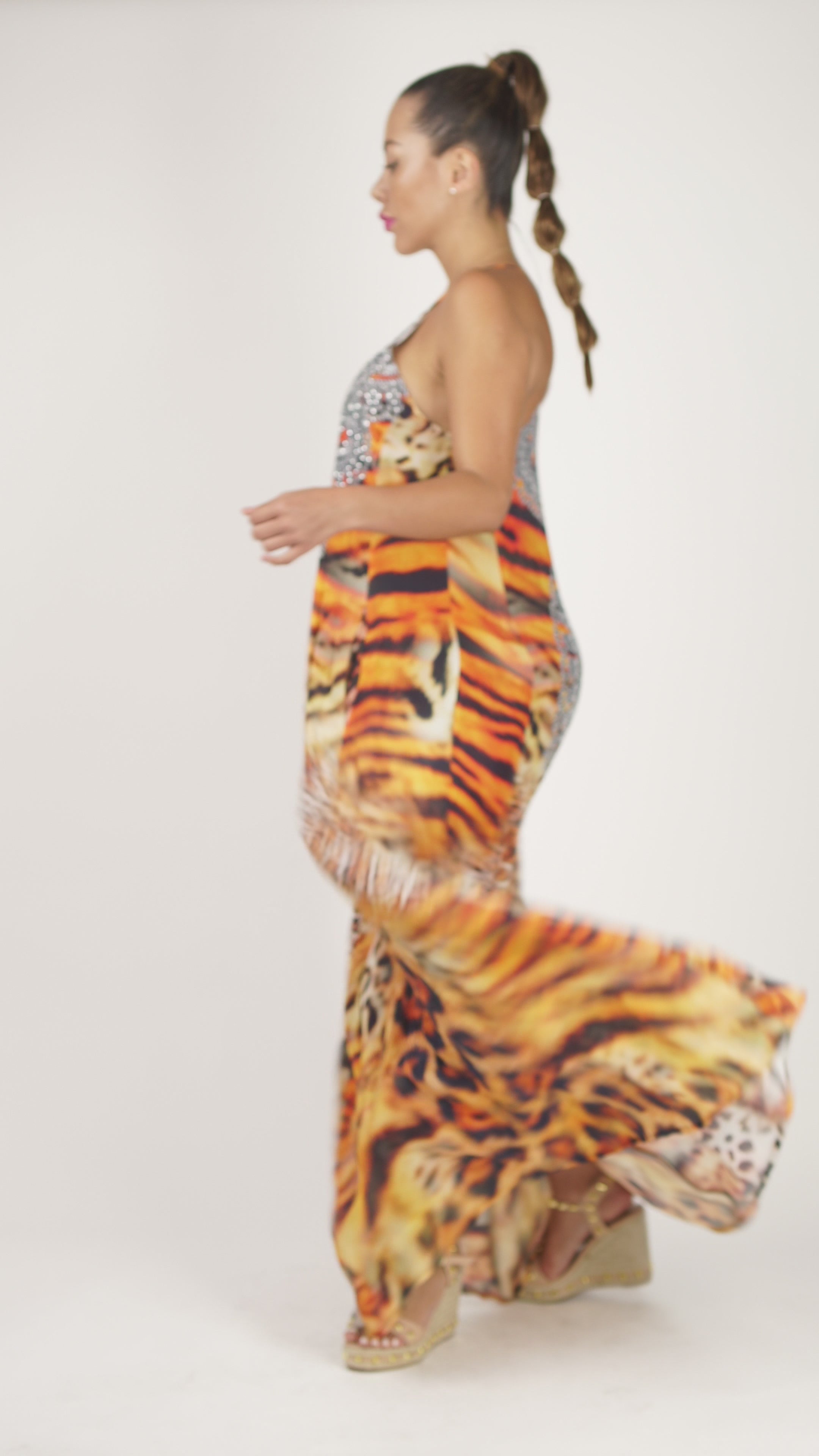 Orange Animal Print T-Back Dress